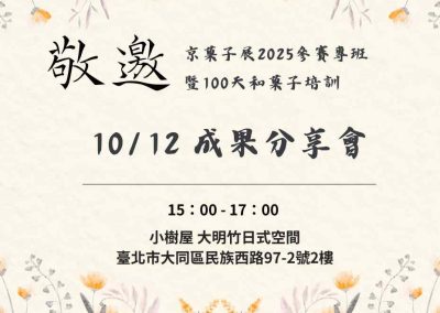 Rti台湾国際放送 Read More 京都製菓學校二日課程圓滿完成 Read More 日式時尚茶道:裏千家初級入門班 Read More 京都製菓結業式大合照 京菓子成果分享會京菓子成果分享會 京菓子展觀展 京都見學私房課程 2026京菓子展入圍 拜會京都日台親善協會 壹電視採訪 616成立大會 一個人走得快一群人走得遠 共同成長 在做甜點的路上,你是否覺得單打獨鬥呢?在這裡我們建立了一個交流平台, 資源共享、互相扶持、舉辦聯合活動,放大我們的努力,達到事半功倍! 課程講習 邀請業界知名甜點達人傳授台日特色甜點,提供學習進修管道,一起共學共好! 日本見學 第一手與日本當地甜點講師交流, 學習獨家甜點技術 協會緣起 協會宗旨 加入會員